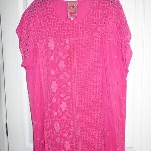 JOHNNY WAS ( LARGE) CUPRA RAYON PINK ROUND NECK