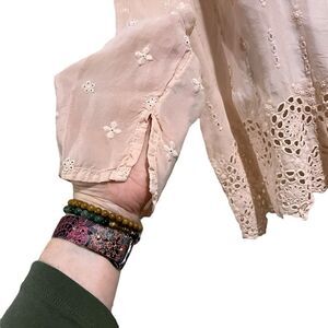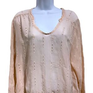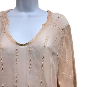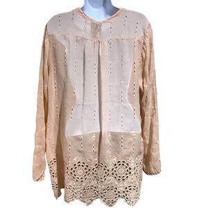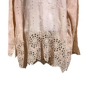 JOHNNY WAS Tunic Top Embroidered Eyelet Details Peach Size L/XL