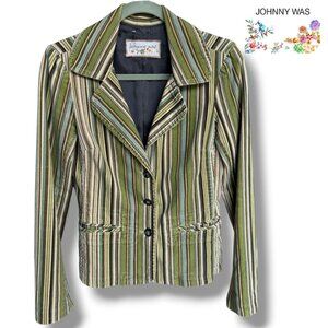 JOHNNY WAS Vintage Women’s Velvet Striped Green Blazer Jacket Velour | Sz S