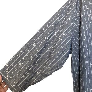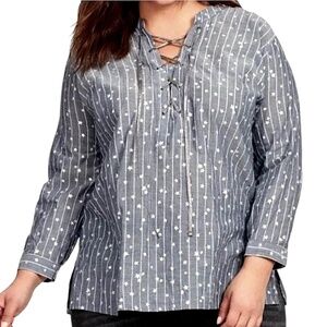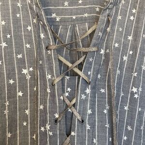 JOHNNY WAS WORKSHOP Stars & Stripes Lace-Up Top Gray Chambray Boho