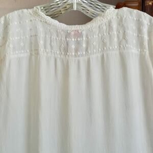 JOHNNY WAS White Embroidered Tunic Top SZ M Eyelet Short Sleeve Trapeze Dress