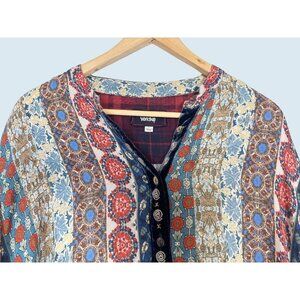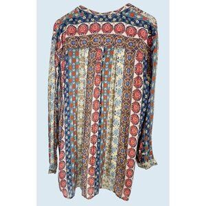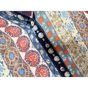 JOHNNY WAS Workshop Printed Semi Sheer Full Button Top Sz Sm *Flaw*