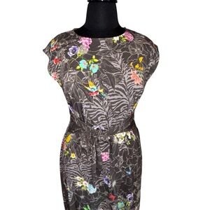 JOHNNY WAS ZIPPY TIE FRONT KNIT DRESS Women’s Large Grey/Floral Pattern