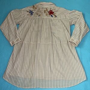 JOHNNY WAS embroidered floral striped long sleeve button up blouse tunic size M