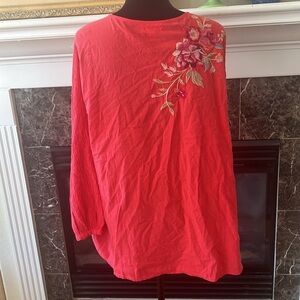 JOHNNY WAS sonya popover blouse red Hawaiian 2XL
