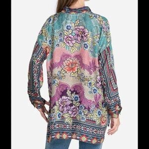 JOHNNY WAS spring boho printed Janelle Button-up silk blouse M tunic fall $240
