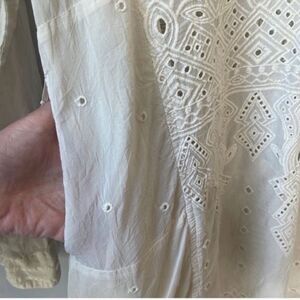 JOHNNY WAS Embroidered Blouse Tunic Cupra Rayon Pocket Long Cream