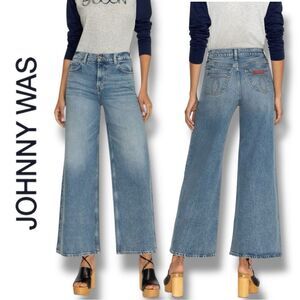 Experience effortless style with Johnny Was' designed with a wide leg for a relaxed and fashionable fit. The classic blue color complements any wardrobe, making these jeans a versatile choice for casual outings. Crafted with attention to detail, they offer both comfort and a chic look.