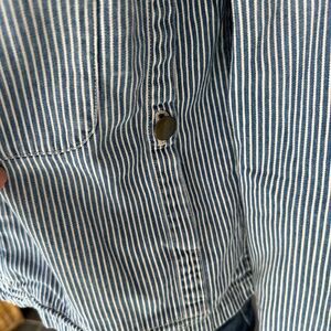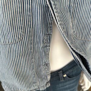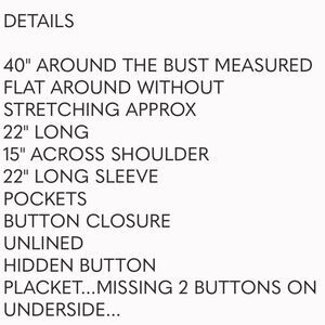 Never worn since purchasing. Beautiful lightweight jacket. Love the pinstripes! Sold as is. No returns. Ask questions before purchasing.