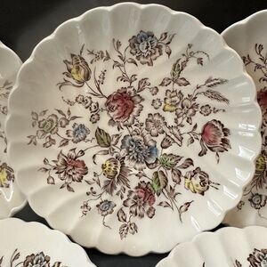 JOHNSON BROTHERS 5 Saucer Plates Staffordshire Bouquet Brown Multicolor VTG