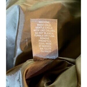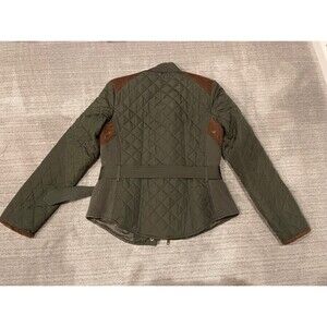 Quilted and knit with corduroy accents. Brass hardware, zipper and snap closure with buckle belt. Very good pre-owned condition. 100% Polyester. Machine wash and dry. From my personal closet.