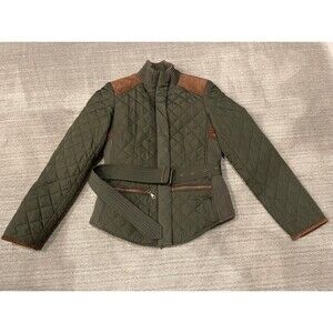 JOHNSTON AND MURPHY Quilted Belted Jacket, Olive and Brown, Sz S