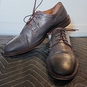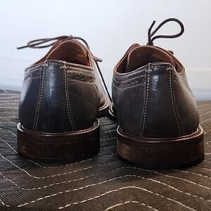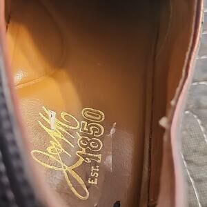 THESE BAD BOYS JOHNSTON MURPHY 1801 ARE IN GOOD PREOWNED CONDITION. THEY ARE DARK BLUE/ BROWN DERBY'S. THE INSIDES INSOLES ARE CLEAN AND NO HOLES ANYWHERE .THE 100 % GENUINE LEATHER. MENS SIZE 9.5