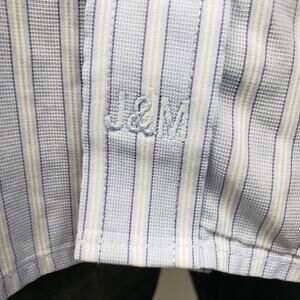 Embroidered J&M branding logo at bottom placket