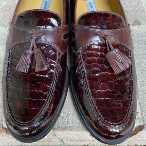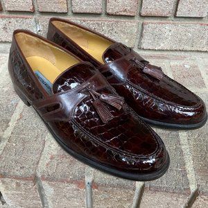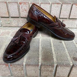 JOHNSTON & MURPHY Men's Brown Tassel Slip On Gator Print Loafers Size 12