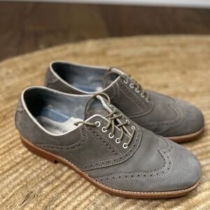 Johnston Murphy Gray Sheepskin Leather Wingtip Lace Up Oxfords Shoes Men's Size 10