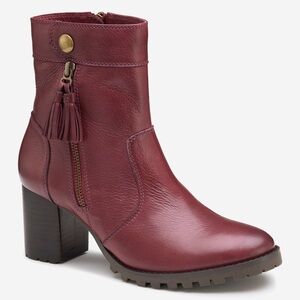 JOHNSTON & MURPHY Vivica Zip Tassel Detail Red Wine Boot Size 10 (78-52627)