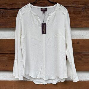 JOHNSTON & MURPHY Women’s Bell Sleeves Top Cream, Crepe, Sz Small S 45-1544 NWT