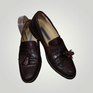 JOHNSTON & MURPHY MADE IN ITALY BROWN LEATHER MENS TASSEL LOAFERS SHOES SIZE 9 M.