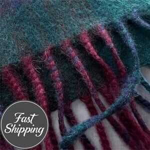 JOHNSTONS OF ELGIN Men’s Scarf Red Green Blue Tartan Cashmere Made in Scotland