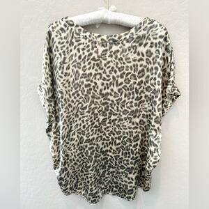 Tags silk blouse, leopard top, animal print blouse, luxe silk shirt, dolman sleeve, neutral silk top, designer top, relaxed fit top, boho chic, business casual