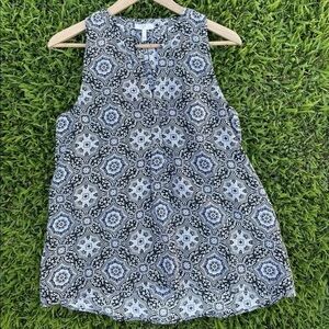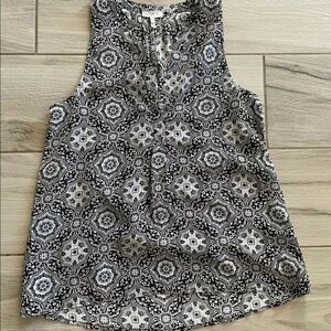 JOIE 100% Silk Tank Top Size XS Black White Medallion Deep V-Neck