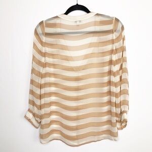 Joie Aceline Tan/Cream silk striped v neck sheer blouse