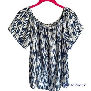 Joie Amesti B Off-the-Shoulder Blue Ikat Ladies Silk Casual, Party Top.