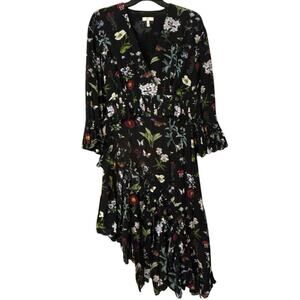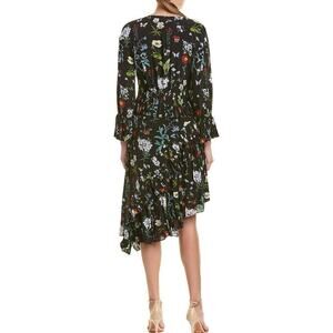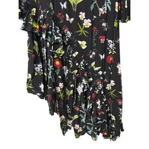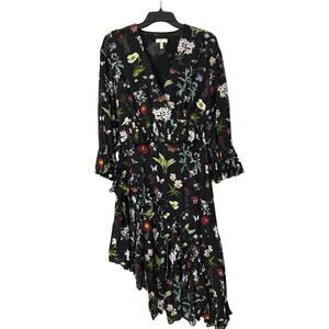 JOIE Analena Butterfly Floral Print Asymmetrical Ruffle Pleated Midi Dress Med