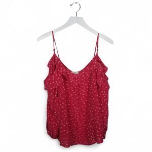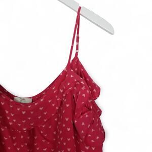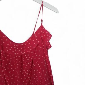 JOIE Birtha 100% Silk Ruffled Spaghetti Straps Blouse White Hearts On Pink/Red M