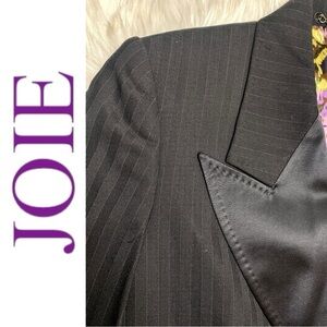 JOIE Black Satin Lapel Pin Striped 1-Button Hourglass Blazer Floral Lining Small