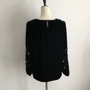 JOIE Black Velvet/Velour Perforated Cut Out Long Sleeve Slit Hem Shirt