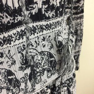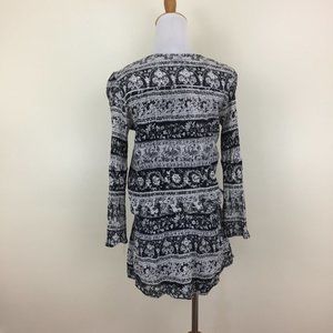 JOIE Black White Print Solid Slip Dress Lined Low Drawstring Waist Dress