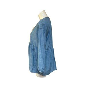JOIE Blue Bealette Boho Blouse Peasant Shirt Lace Front Medium