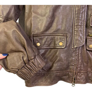JOIE Brown Genuine Leather Hooded Bomber Jacket