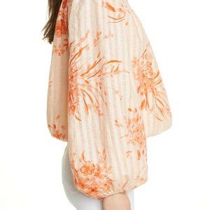 JOIE Cadby LINEN BLOUSE S Floral Island Sunset Square Neck Balloon Sleeves $228