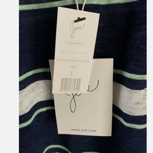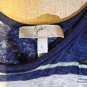 Joie Carmenella Navy and White Striped 100% Linen Tank Top in Size Large.