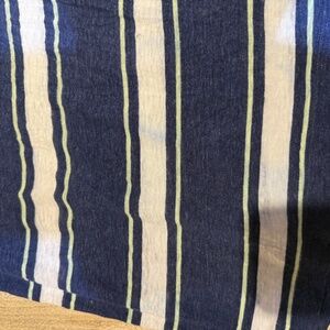 Dark Navy Blue, Sage Green, and White Striped Tank Top. Can pair with white denim shorts for a perfect summer look. Tiny pin hole on front - sort of blends in with the stripes or can be tucked into shorts.