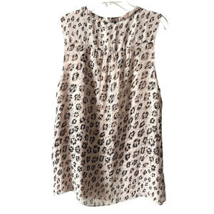 JOIE Corie Sleeveless Silk Shell Top Size XS Cappuccino Leopard Keyhole