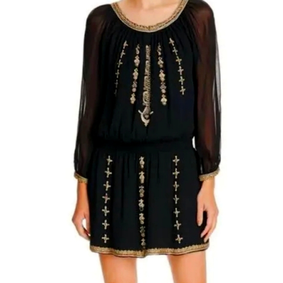 Joie derline embroidered embellished beaded long sheer sleeve dress.Elastic waisted pullover dress. Shell 100% polyester.