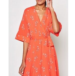 With Kimono Sleeves, a Tie Waist and Flattering Shape. This Dress Comes With Plenty of Swish. Cut in a Bold of-the-moment Hue and a Delicate Floral Print its Equal Parts. Pretty and Show-Stealing.