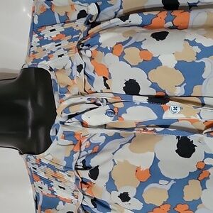 Painterly blooms dance across this charming blouse, creating a vibrant and effortlessly chic look. The delicate tie neckline adds a touch of bohemian flair, while the long sleeves offer versatility for year-round wear. Ruffled cuffs add a touch of femininity. This blouse is perfect for adding a pop of color to your everyday wardrobe. Imagine wearing it to a casual brunch with friends, a relaxed afternoon of shopping, or even a creative office setting.