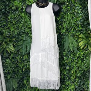 JOIE Dress Women 8 White Fringe Layered Sheath Fringe A Line Coctail 2097