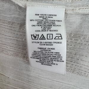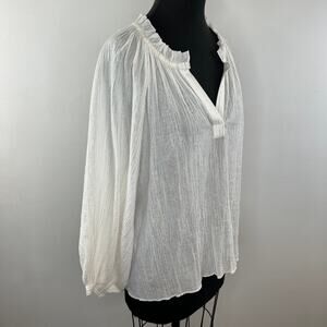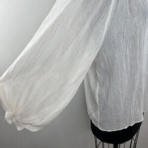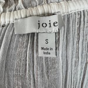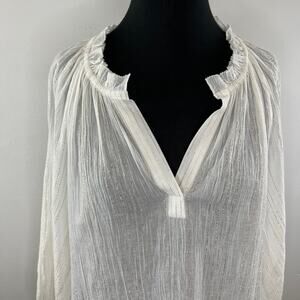 JOIE Elza White Metallic Gold Stripe Cotton Blouse V-Neck Ruffles Sheer Top S SM