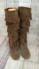 Malibu style, boho hippie chic fringed flat tall boot by Joie, in cognac suede.