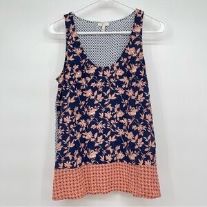 JOIE Floral Sleeveless Pure Silk Top Navy Blue Peach Medium