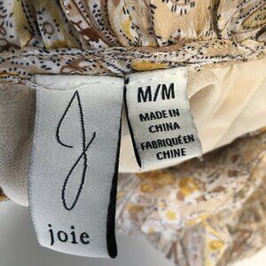 JOIE GLITTER PAISLEY RUFFLE MOCK NECK FLUTTER SHORT SLEEVE BLOUSE Size M