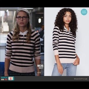 Joie Gabbe striped pink and black polo sweater with Peter Pan collar. Vintage prep school vibe. Preowned Sweater in excellent condition.