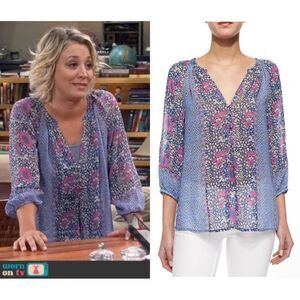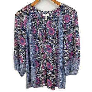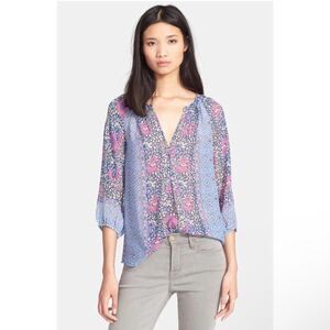 JOIE Gloria V-Neck Silk Mixed Print Lightweight Blouse Size XXS