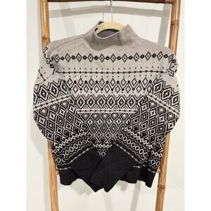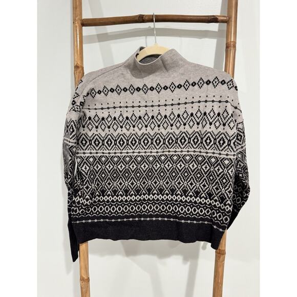 JOIE Gray FairIsle Cross Turtleneck Sweater Womens Small Mock Neck Nordic Jumper